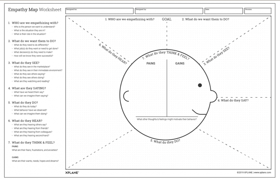 Figure 2 Empathy map: https://xplane.com/worksheets/empathy-map-worksheet/